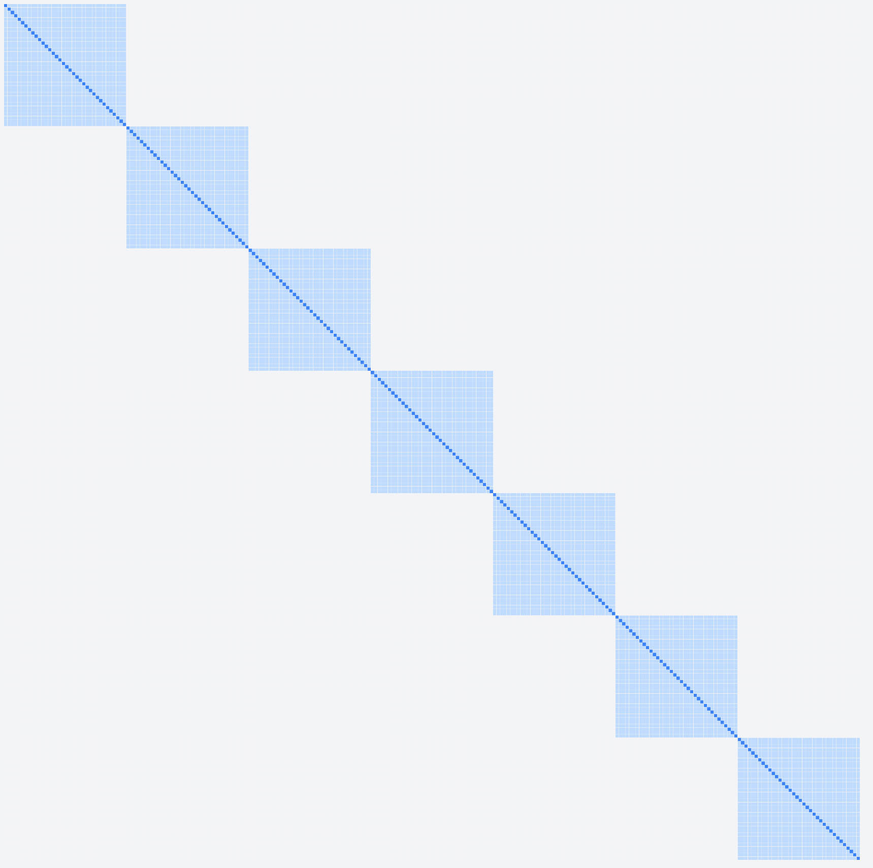 Fig. 2: Full Temporal, No Spatial (f=all, h=1, w=1). Attends to all frames in the temporal dimension, but only attends to itself in the spatial dimension.